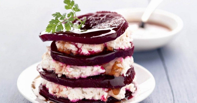Le Millefeuille de Betteraves et Mousse de chèvre